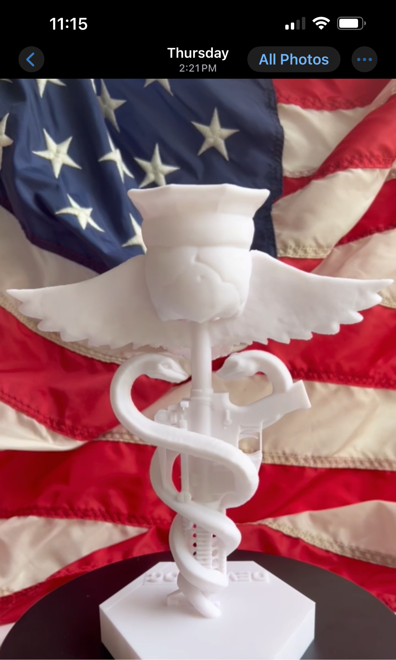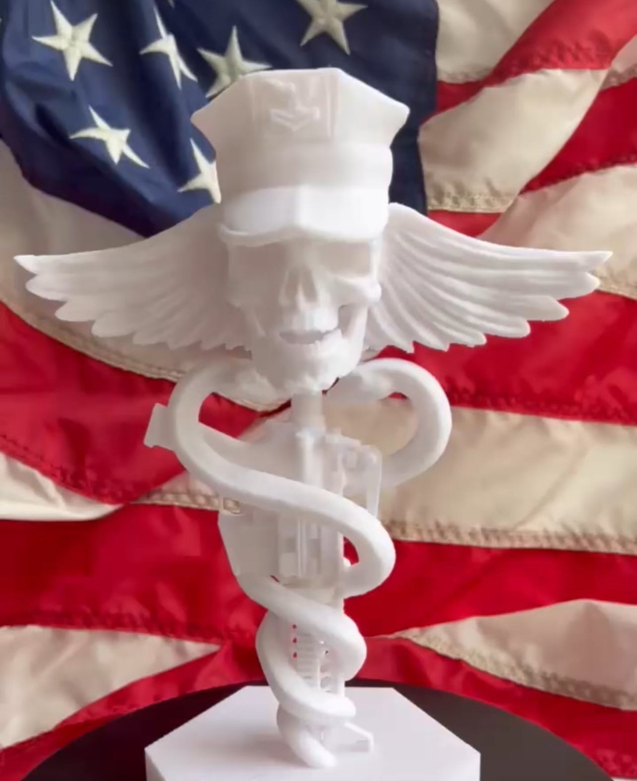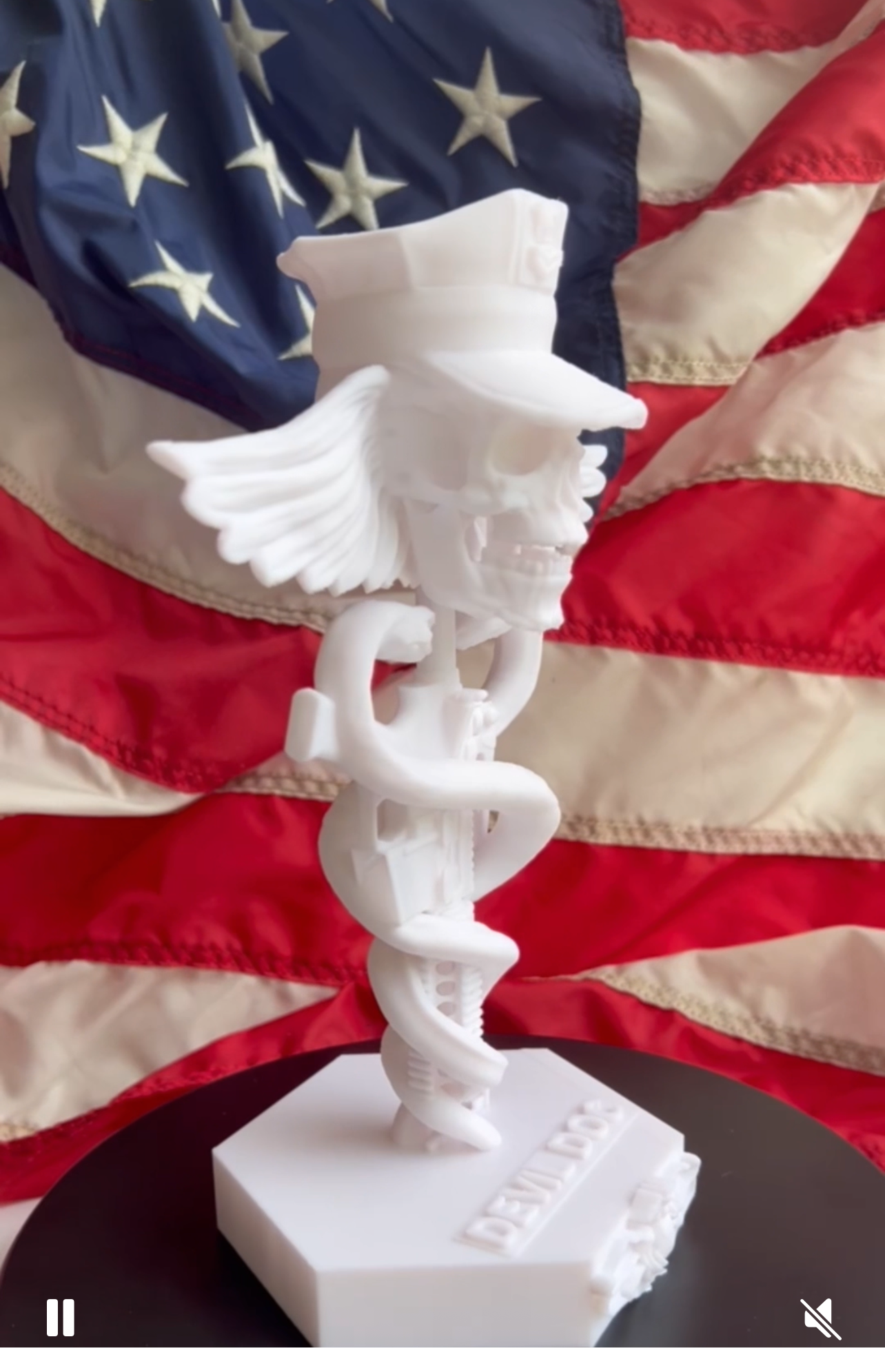 This Is my rendering of the Devil Doc in a 3d print. This print comes with Enlisted rank as well as the FMF warfare pin on the base. This is a paintable print to show off you FMF Corpsman pride or as a retirement gift. This is a very highly detailed 3d print
