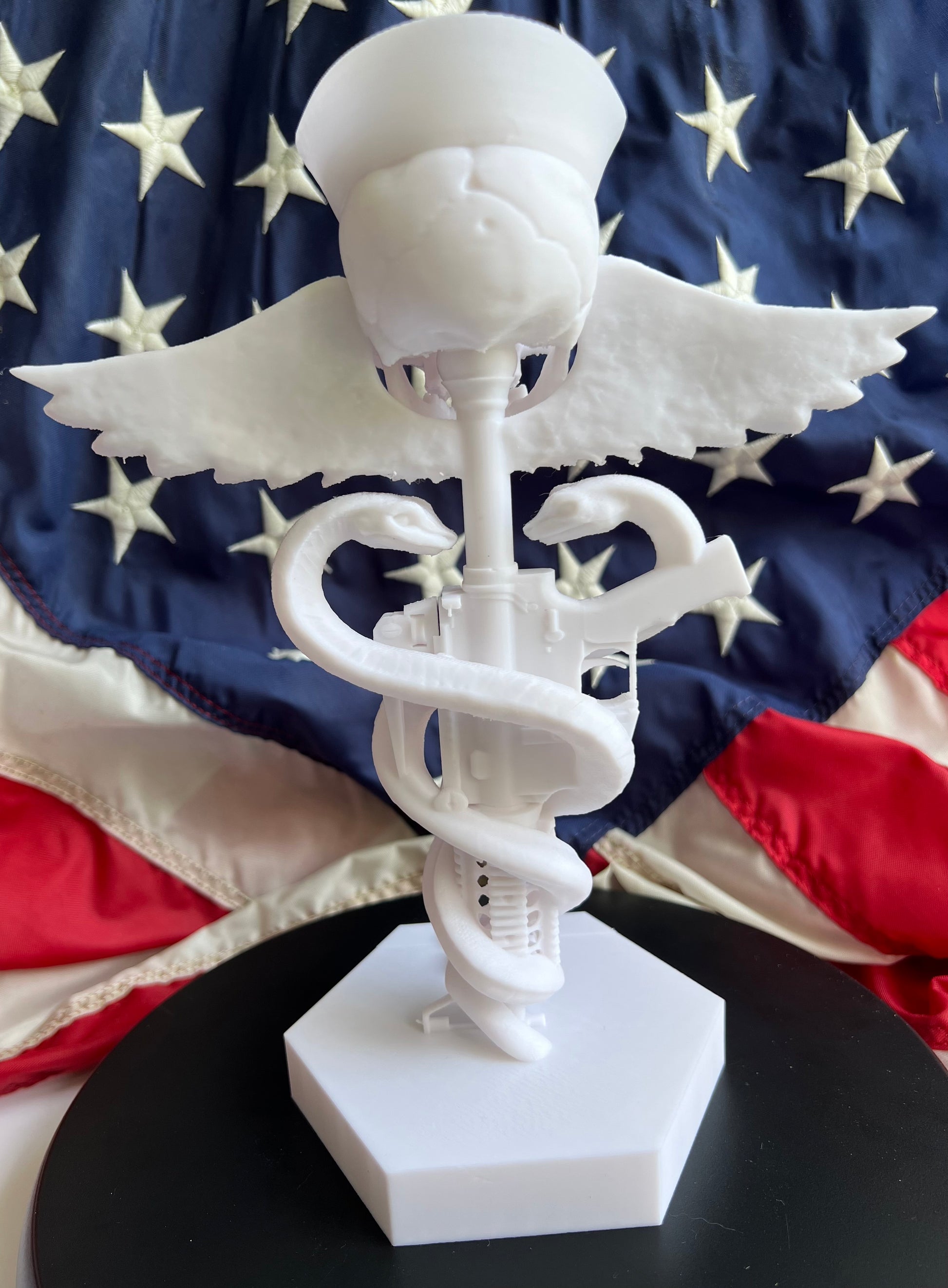 This is my rendering of the Hospital Corpsman in a 3d print. This print comes with Enlisted rank on the base. This is a paintable print to show off you HM Corpsman pride or as a retirement gift. This is a very highly detailed 3d print.