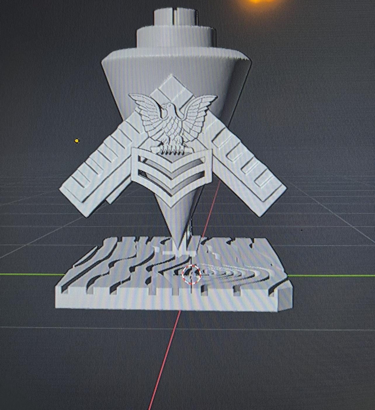 The Seabee BU rating badge plum bob made into a 3d model with added aspects of their job in the Military from the wooden board base to the speed square to support the plum bob to keep it elevated. This is my design and is one of a kind paintable 3d print. This a great add for any Seabee Bu to display their pride not only as Seabee Bu but also as being a part of the Military Naval Construction Force.3% of all direct profit goes to mission 22 to support Vets.