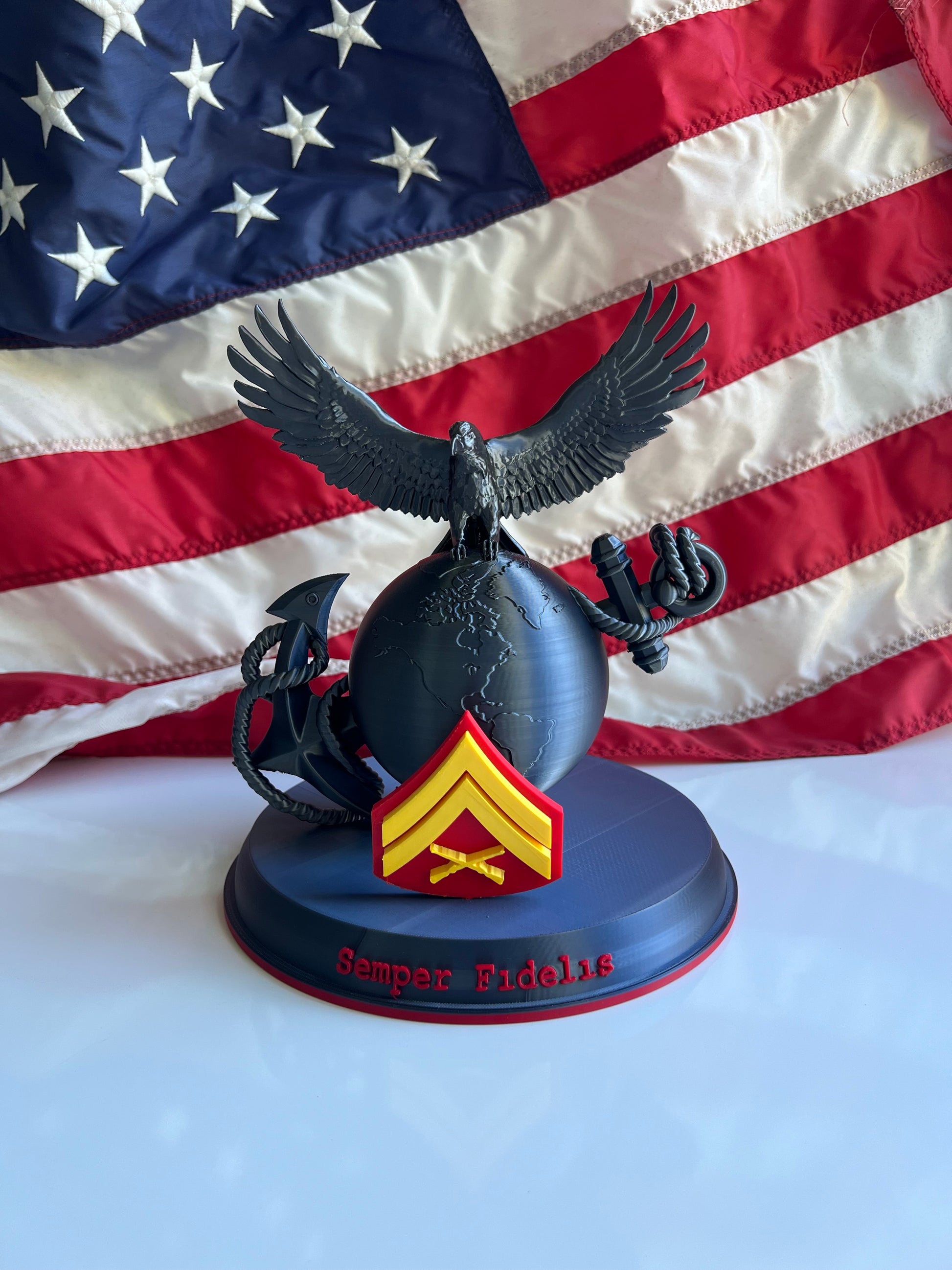 Crafted to honor Marine heritage, discipline, and loyalty, this display makes a bold statement in any setting — at home, in your office, or your command.